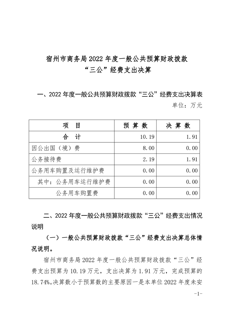 宿州市商务局2022年度一般公共预算财政拨款“三公”经费支出决算 |