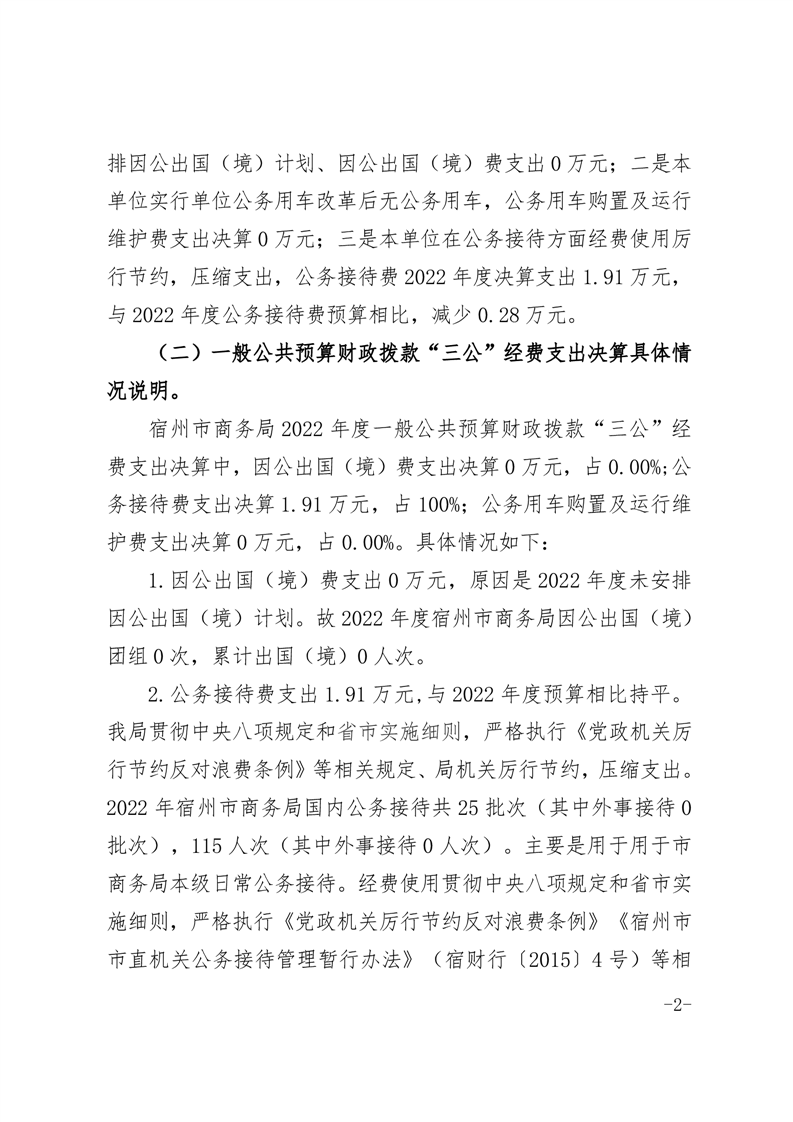 宿州市商务局2022年度一般公共预算财政拨款“三公”经费支出决算