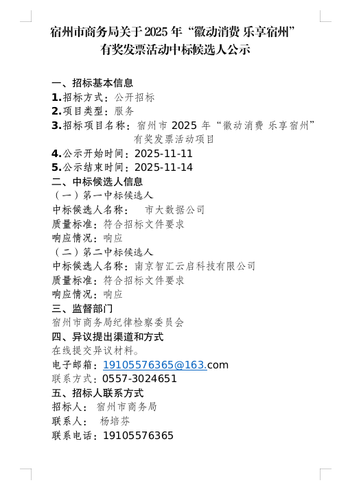 有奖发票活动中标候选人公示