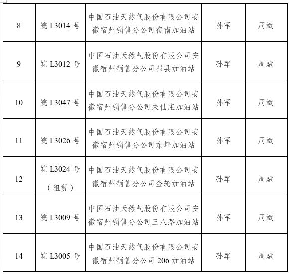 关于中国石油天然气股份有限公司安徽宿州销售分公司