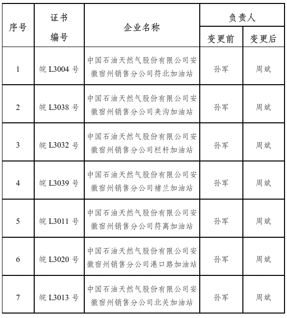 为进一步推进效能建设,实行政务公开,现对埇桥区商务局上报的《关于中国石油天然气股份有限公司安徽宿州销售分公司14家加油站变更<成品油零售经营批准证书>的请示》有关事项进行公示,公示时间2025年11月28日至2025年12月4日(内容见附件)。