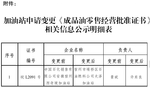 附件:加油站申请变更《成品油零售经营批准证书》相关信息公示明细表